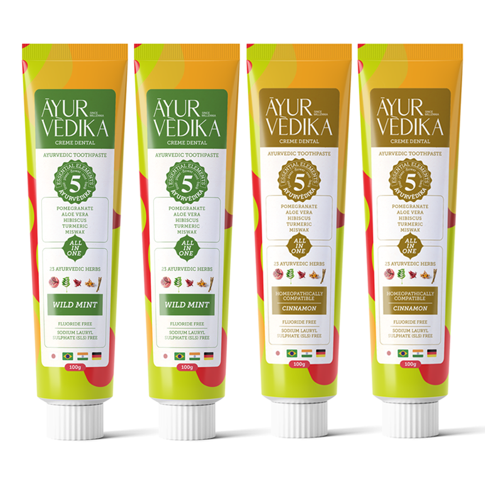 Adquira agora o Kit Cremes Dentais Ayurvédicos Sem Flúor - Cinnamon + Wild e transforme a rotina de higiene bucal da sua família numa experiência consciente, sofisticado e eficaz.