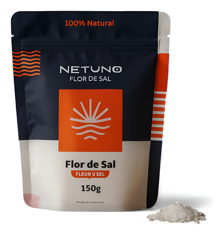 A **Flor de Sal Netuno** é fruto de um delicado processo artesanal, sendo altamente valorizada no universo da alta gastronomia. Formada pela fina e rara camada de cristais que surge na superfície da água do mar em condições climáticas específicas, sua colheita é manual, preservando toda a pureza e autenticidade do produto.